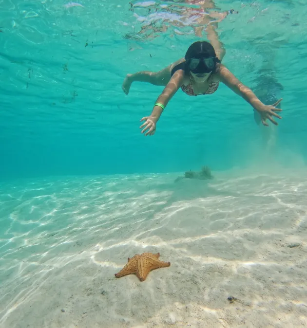 Imagina flotar en aguas cálidas y transparentes mientras contemplas de cerca un santuario de estrellas de mar.