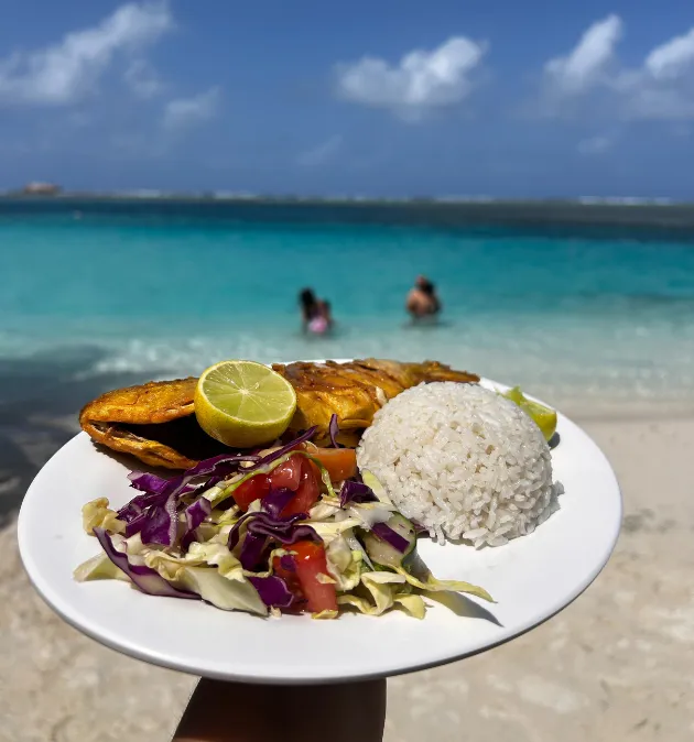 Disfruta de un almuerzo de mariscos frescos y pescado preparado por la comunidad Guna.